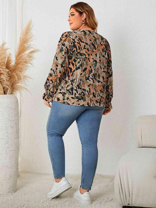 Plus Size Twist Front Long Sleeve Blouse